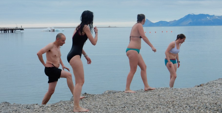 | Every year some brave people are going for a swim. The decision is usually made during the bar night. Water temperature is 7 degrees Celsius. | |