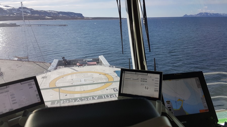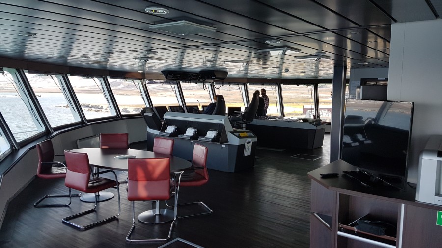 | Today, we are visited by Svalbard Science Forum and Sysselmannen and invited for a diner on board of the governors voat polarsyssel. A unique opportunity to enjoy the view from the captains deck. | |