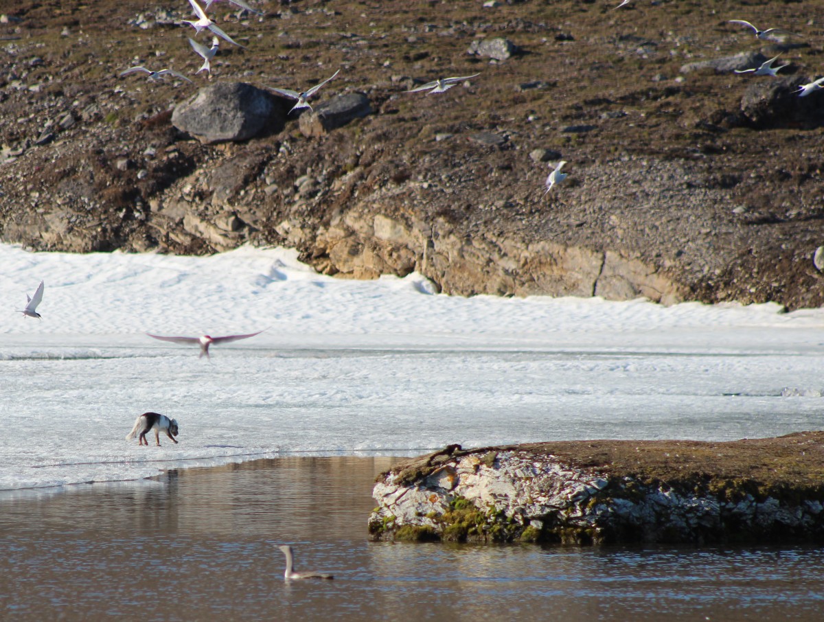 | Today we visited our tern paradise. We gave this area that name in 2016 as an ideal breeding locality for arctic terns. Unfortunately it was empty in 2017. But today the odds were better, though another visitor, the arctic fox, was close. | |
