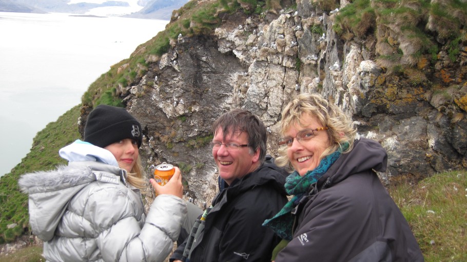 | After having lunch at the bird cliff, we cross several hills to get to the ice cap. For Willemijn all this climbing is a bit to much. Still she explains in this video what we have doneand where we are. | ||