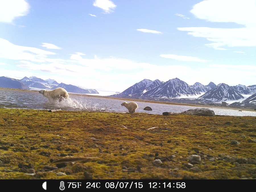 | Op Spitsbergen gebruik ik eenvoudige automatische camera's om dieren vast te leggen op plekken die ik moeilijk in de gaten kan houden. De camera's zijn jaarlijks een aanbieding bij de Aldi voor € 80,-. Ik heb er twintig en op deze manier zijn duizenden foto's genomen, die ik allemaal moet categoriseren. Vandaag stuit ik op een verrasing. |