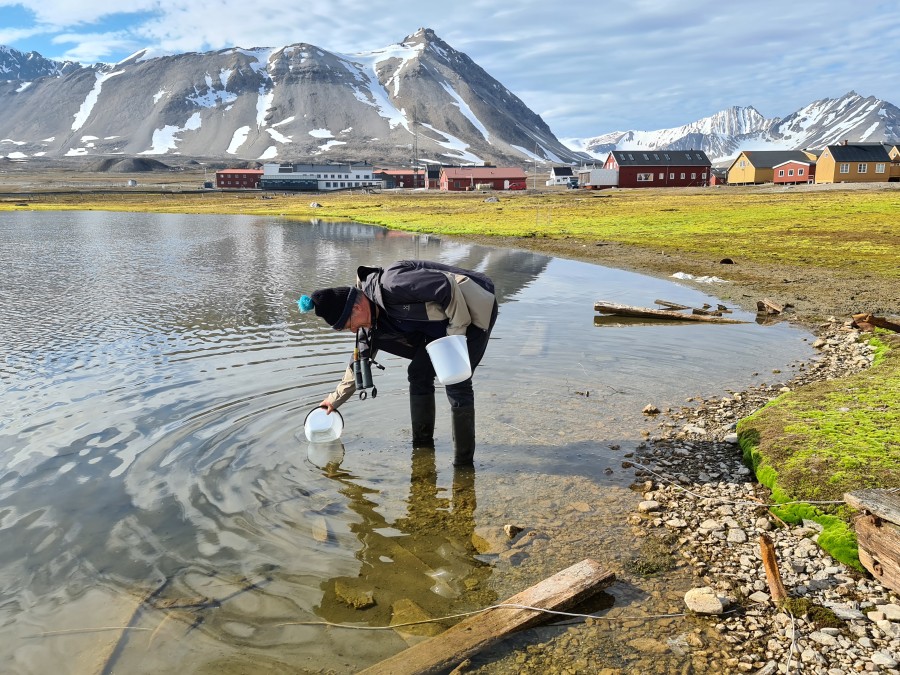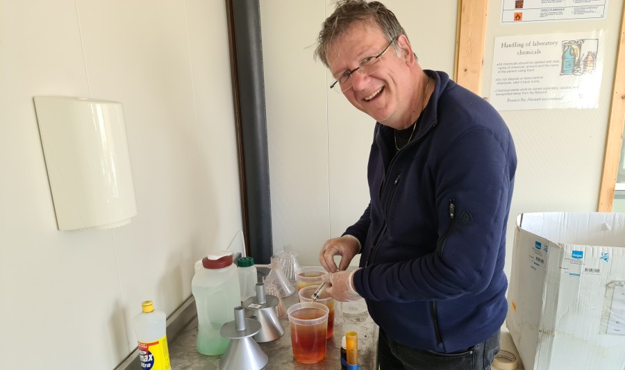 | Last year, it took quite long before we saw waterfleas in lake Solvatnet. The year before it was full with waterfleas from the beginning. That is why I am now every week taking a lake water sample. Fix it with lugol and store it for later analysis. Today Christophe accompanied me and made these pictures. | |