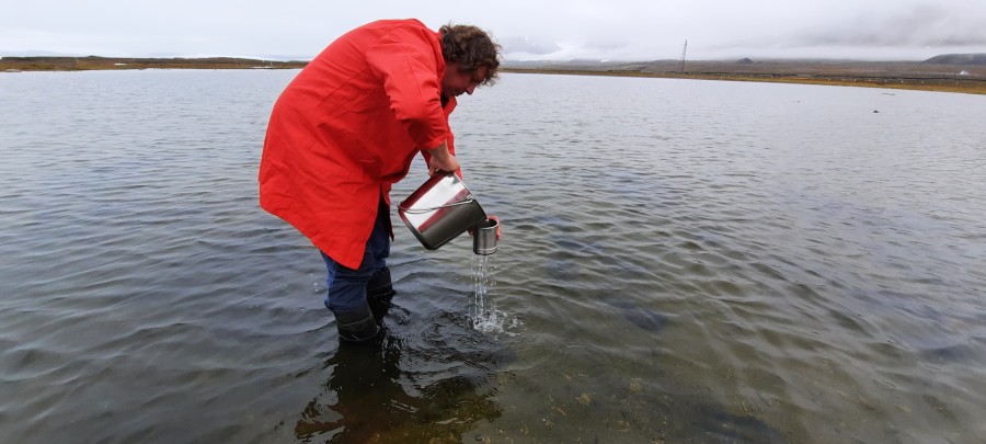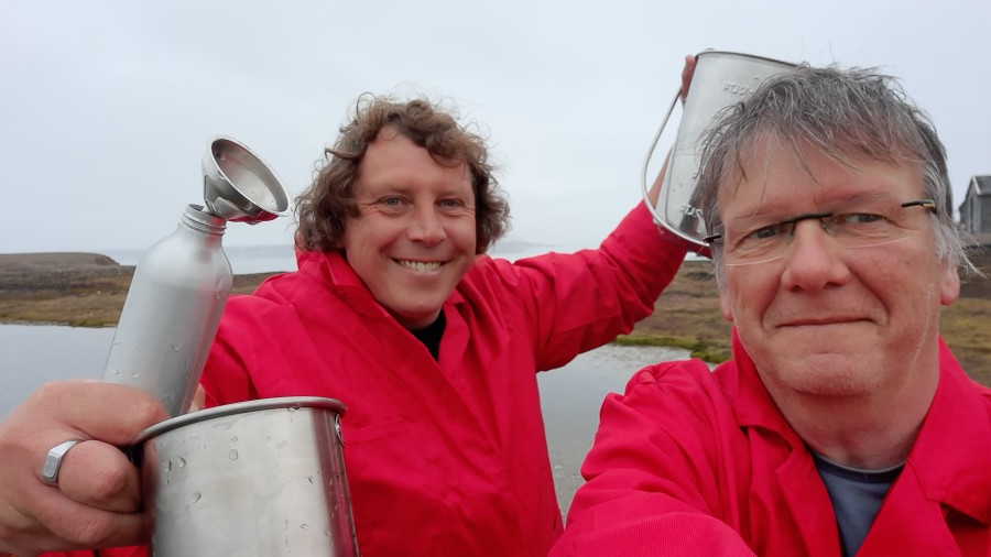 | Christophe and Maarten have received project money for a proposal to study microplastics in shallow arctic ponds. Our sampling equipment has no plastic and we wear a signal red coat so any fibers we loose and which contaminate the sample will be recognizable. | |