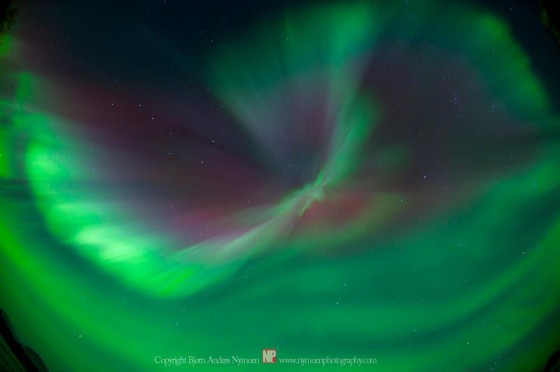 In mainland Norway, the lights were even more spectacular. This picture is made by Bjørn Anders Nymoen in mainland Norway and shows the great dipper through a small hole in the aurora borealis. More about his pictures on http://www.nymoenphotography.com |