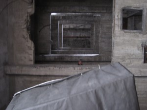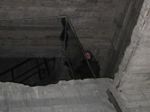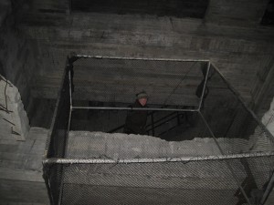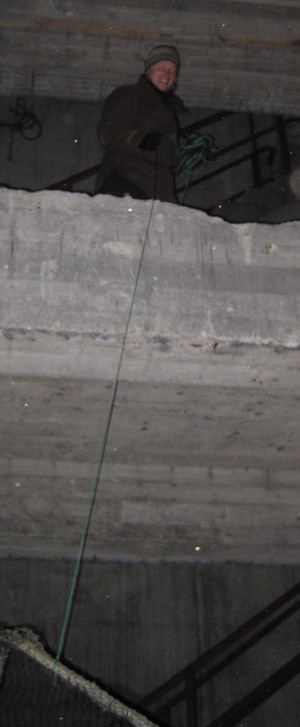 During winter, I have stored some cages in the coal cleaning building. This building is the biggest in town, but rather dark and spooky. Today Margje and Maarten are collecting these cages from the second floor, lowering them on a long line. More information about this building and all other buildings in the village can be found here. |