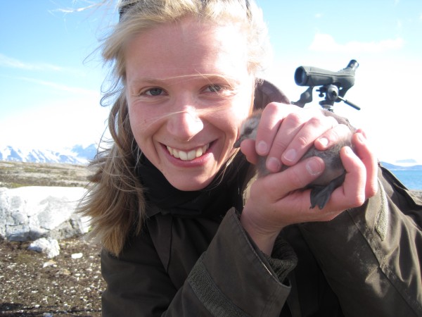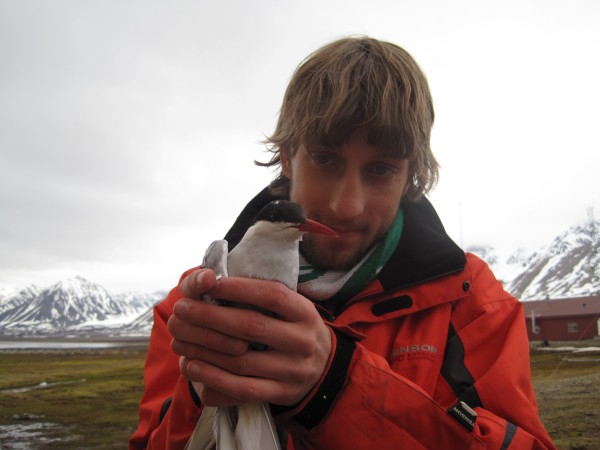 ![]() | Tim holds an arctic tern after removing a geolocator. |