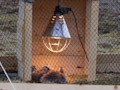 During the night we park the geese and give them some pellets and a heat lamp. The wild geese are grazing the vicinity so heavily that there is not much grass left for the goslings in our experiment. So we are moving them around a lot. | ||