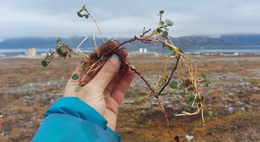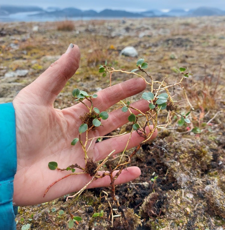 This is more or less how tall a shrub grows on Svalbard. The twigs are not even half a centimetre thick. Unbelievable that you can still see tree rings in the wood, but you really can!