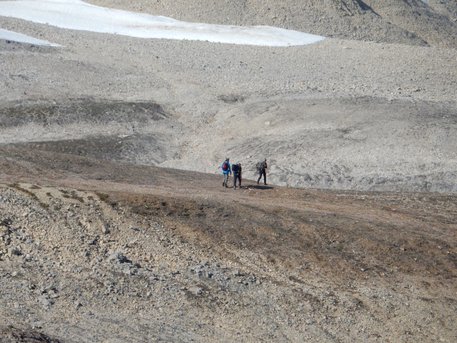 Any time I go into the field with all safety equipment, the song comes in my head. Gun, signal pistol, radio, binoculars, satelite phone, emergency blanket. They have taken it all with them and have started a walk to the tip of Brøgerhalvøya. There they will stay overnight, baking pan cakes at Geopol.