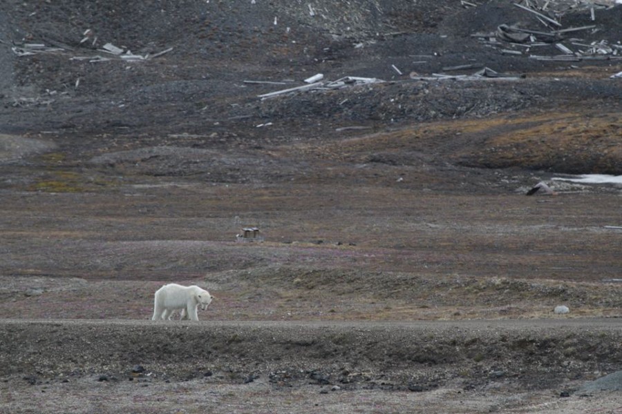 | De eerste beer van dit jaar komt uit het binnenfjord en wandelt ten zuiden langs het dorp. Er is geen verjaagvuurwerk afgevuurd, maar het is een goede waarschuwing om alert te blijven. | |