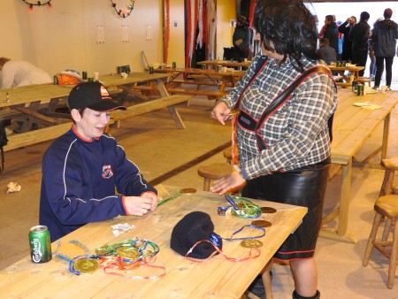 | The theme of the midsummer party is the olympics. There is a proper olympic fire and many people are dressed for the occassion. It starts with a good food and some games. | ![]() |