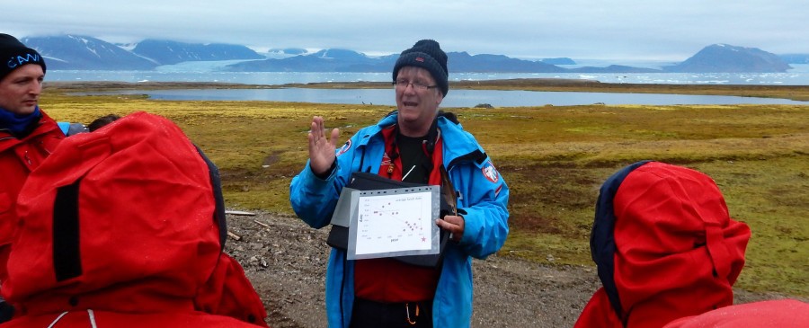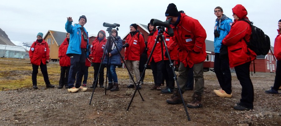 en een Duitse delegatie. Ze hebben geleerd waarom de ganzen naar Spitsbergen komen, hoe we plantengroei meten met geringde spruiten, hoe de vegetatiesamenstelling veranderd door begrazing, hoelamg ganzen niet kunnen vliegen tijdens de vleugelrui, hoe de voosenpredatie op ganzenkuikens varieert tussen jaren, hoe ganzen zich aanpassen aan klimaatopwarming en hoe ganzen extreme jaren nodig hebben om zich aan te passen. Ze kregen een demonstratie hoe we sternen vangen en hoe we de sternen volgen tijdens hun jaarlijkse trektocht naar de zuidpool. Misschien wel een beetje veel, maar ik vond het erg leuk om te doen. Bedankt Janwillem en Willemijn voor jullie hulp en het maken van de foto's | |
