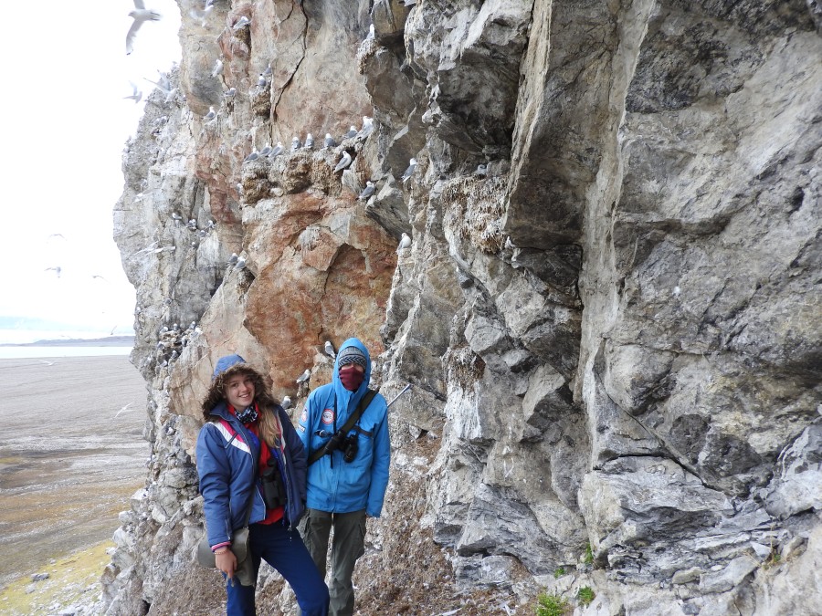 | Maarten, Janwillem en Willemijn zijn vandaag naar de drieteenmeeuwenklif Krikjefjellet gegaan om kiezelwieren te bemonsteren voor een Belgisch project van Eveline Pinseel (Gent) naar het voorkomen van de bodemdiatomee Pinnularia borealis. Willemijn en Janwillem hebben in totaal 5 locaties bemonsterd met ieder 10 verschillende monsterpunten. | |
