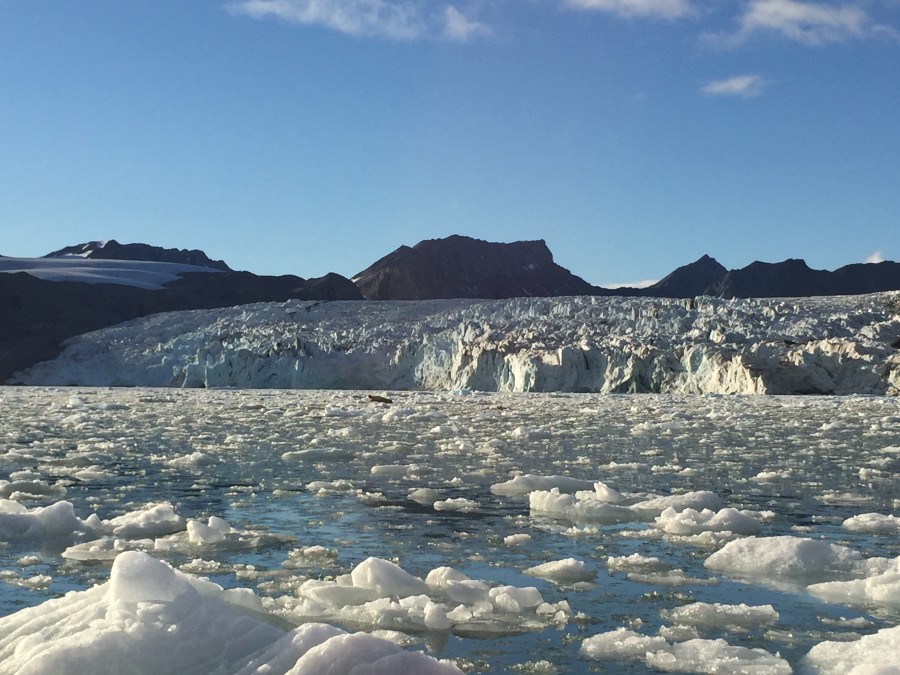 | Earlier that day,we tried to reach the glacier as a farewell, but we stopped by a lot of ice and had to admire the bearded seal from a distance. | |