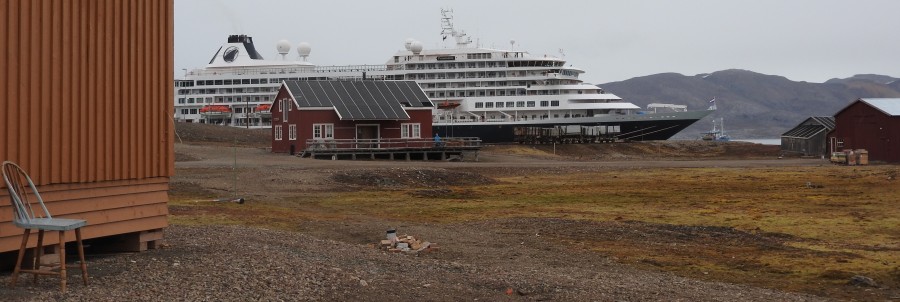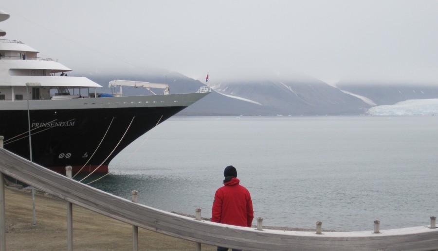 | Uit Amsterdam is in 6 dagen de Prinsendam in Ny-Ålesund aangekomen. Tegelijkertijd is ook de FRAM van Hurtigruten hier, waardoor het dorp vol is met toeristen. De laatste jaren komen de grootste boten niet meer in Ny-Ålesund omdat het hier verboden is voor schepen met zware vervuilende stookolie. Daarmee is het aantal toeristen in drie zomermaanden gedaald van 33.000 naar 15.000. | |