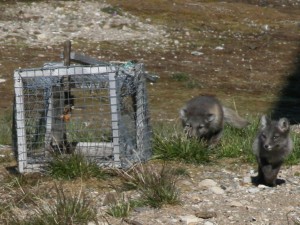 15 juli 2007 14:10 We proberen de vossen te vangen en te merken. Ze krijgen een gekleurd plastic plaatje in ieder oor. De ftografen vinden dat niet leuk, maar de vossen moeten voor ons herkenbaar zijn om ze te kunnen bestuderen. De huidige moer is dezelfde als vorig jaar. Verder is er nog een dochter, Randi, van vorig jaar die regelmatig in het dorp komt kijken. Dat leidt tot felle gevechten tussen moeder en dochter. | ||