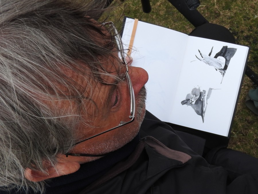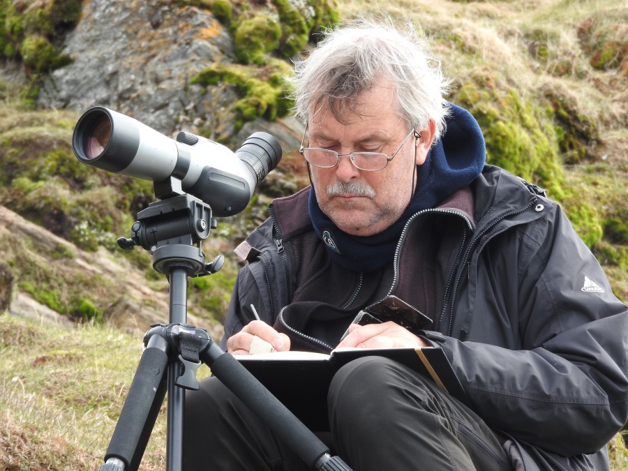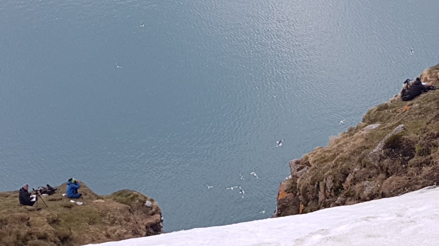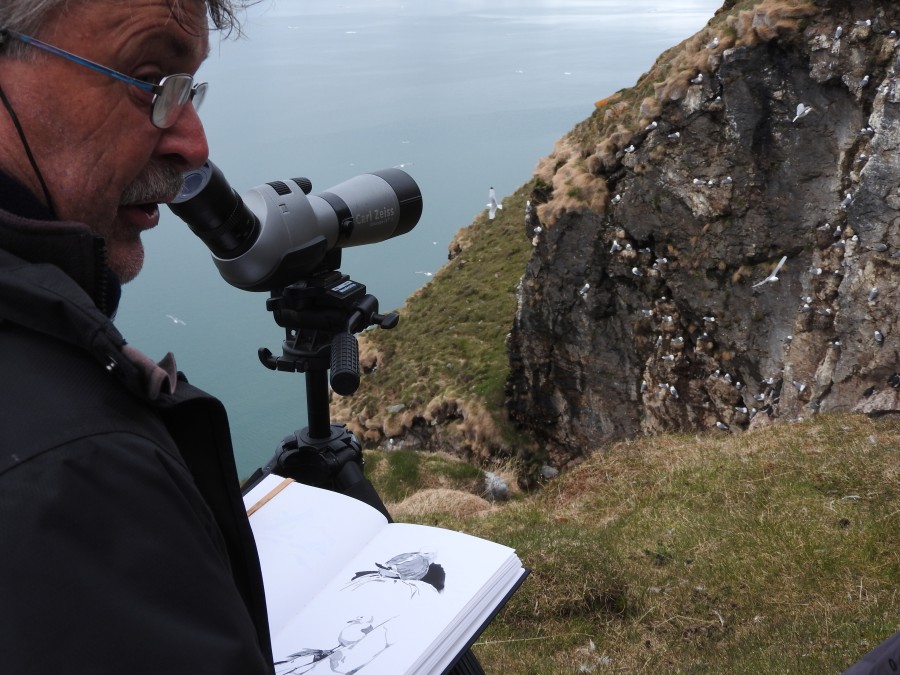 | We are at the bird cliff. Erik van Ommen is drawing the birds. | |