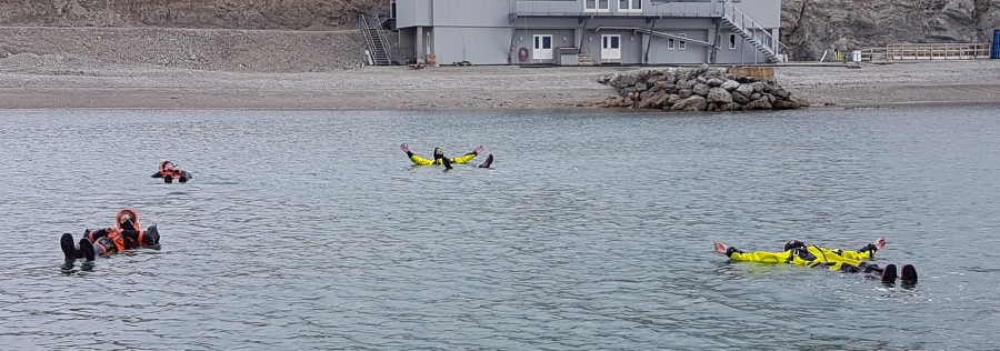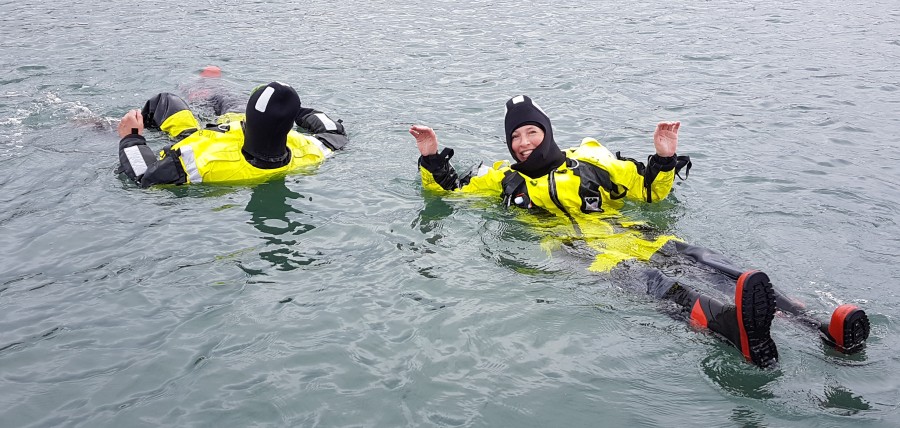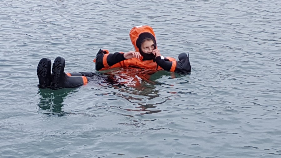 In the harbour we are testing the survival suits. One suit, the one of Frits Steenhuisen failed..... wet clothing. |