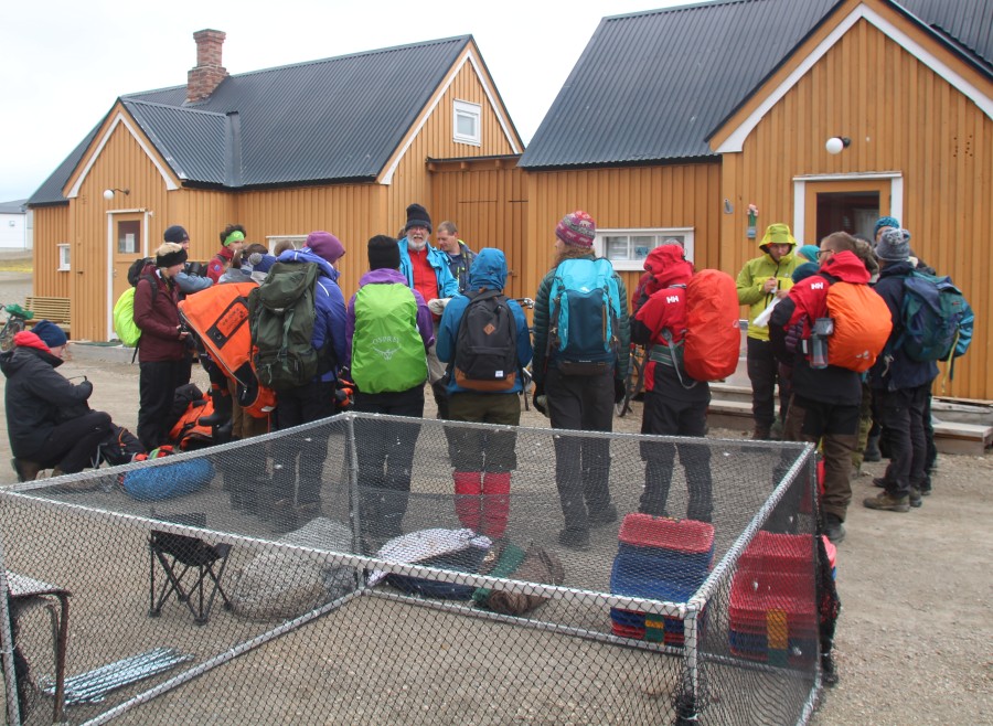 | Al vele jaren komen studenten van UNIS in Longyearbyen op excursie en gaan we samen brandganzen vangen en ringen. Dit jaar is het een groep van 20 studenten met vijf begeleiders van de cursussen AB201 (teresttrische biologie) en AB204 (populatiedynamica). | |