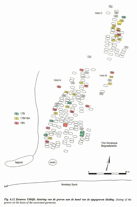 ![]() | The map of the graves at Ytre Norskøya, where 50 graves were opened and dated more than 30 years ago. |