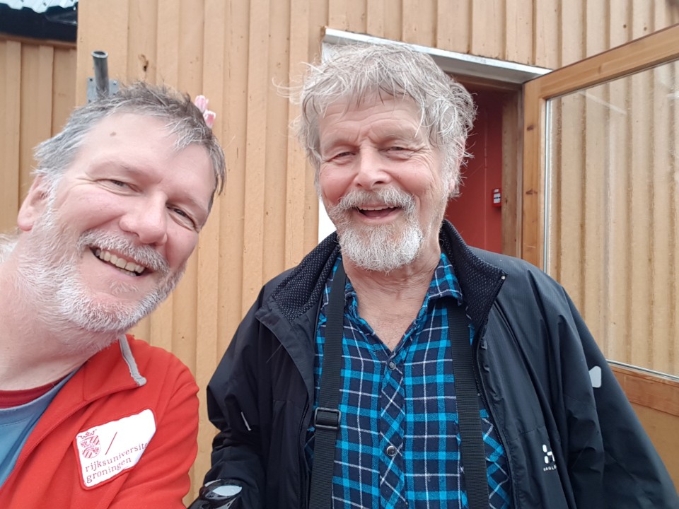 | In 1974 woonde Aksel G. Schjervheim (Okki) in de hut London 2. In die tijd woonden er slechts 6 mensen in het dorp. Het was de periode na de mijnbouw en voor de wetenschap. Deze mensen moesten onder andere gaten boren om de landclaim in stand te houden. Ze noemden dat de politieke boring. Ook vertelt hij van een Rus die bij hem op de bank zat en die overgaf maar dat weer opat. Als hij weg gaat maken we een selfie. | |
