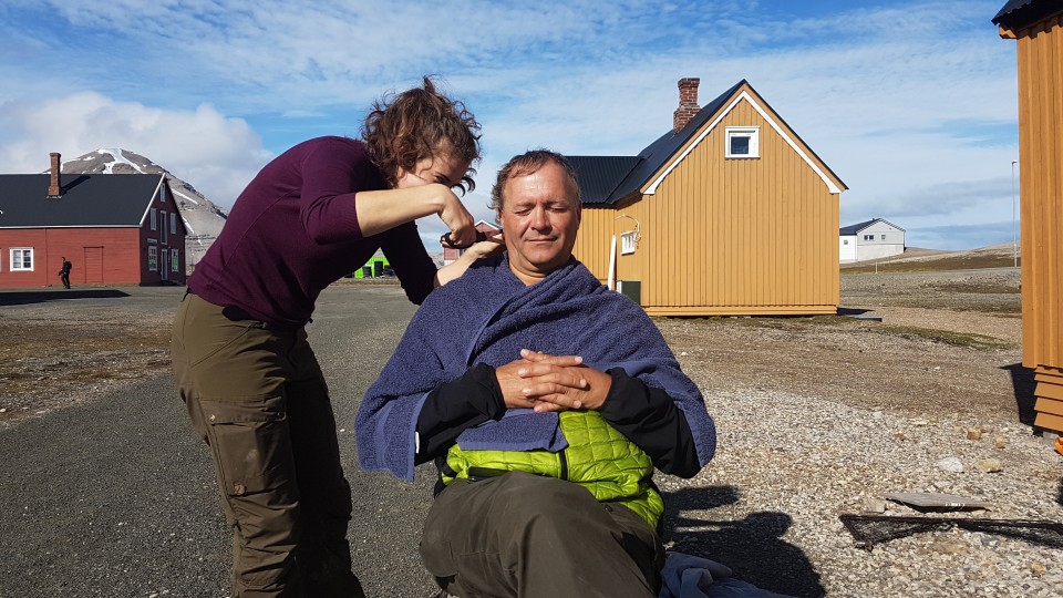 | Armin vond het hoognodig dat hij naar de kapper ging en vond Marlon bereid hem te knippen. | |