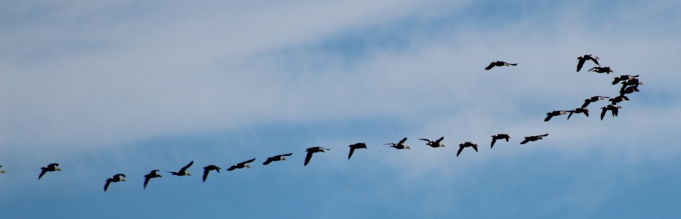 Marlon had een dag eerder ook al een vlucht koningseiders gefotografeerd die over Ny-Ålesund het fjord uit vlogen op 15 juli 2018 om 16:34.