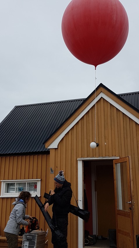 | Nadia, Eefje and Armin have flown their balloon with camera over the last transect. They have locked the balloon to the station as a marker. |