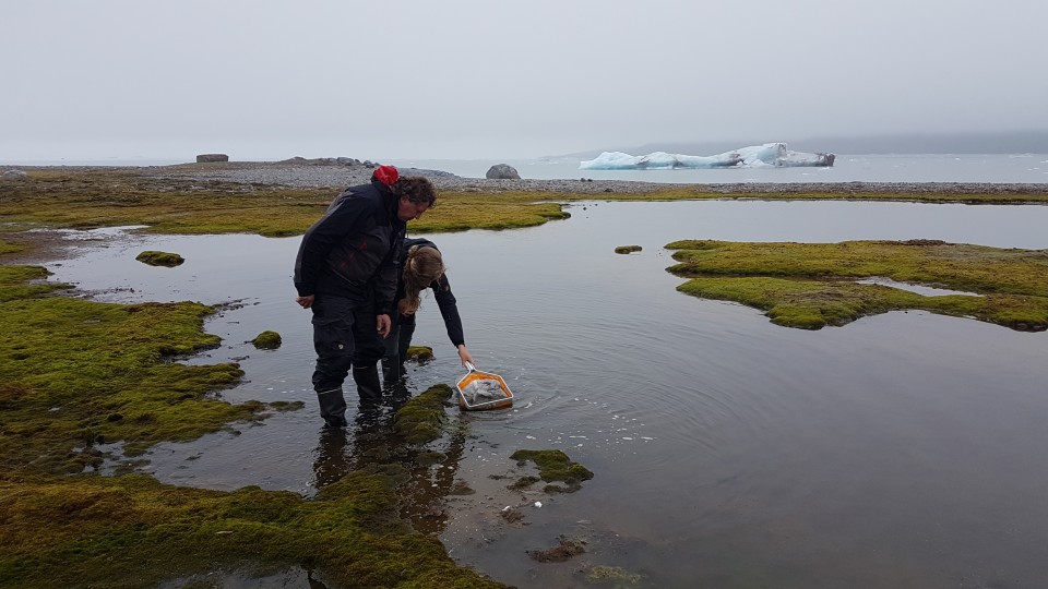 | Vandaag breng ik Armin en Jelle voor een schoonmaakactie naar de hut op Storholmen en ga ik ondertussen met Sanne en Christoph door naar Sigridholmen om daar een meertje te bemonsteren op bodemdiertjes zg. macrofauna. | |