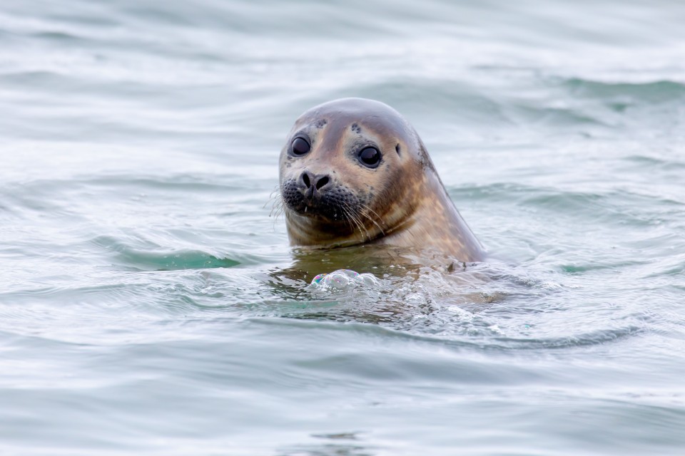 | Een zeehond speelt bij de boot Als we Armin en Jelle ophalen plaats ik ook een wildlifecamera om de aanwezigheid van geringde ganzen vast te leggen. | |