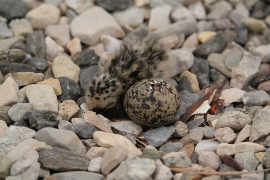 The first egg of an arctic tern has hatched in the area around the diesel tanks. The second one in the same nest has started to open the egg. It looks promising, but now, three days later, things have changed and a glaucous gull has predated all nests in this area including the two chicks and 4 fake eggs filled with plaster. | |