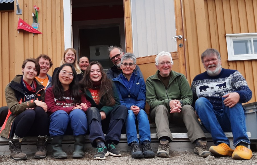 May I introduce the team in the Netherlands Arctic Station of 2019 to uou. In the background from left to right Christophe Brochard, Marije Jousma, Alice Naber and Nico van den Brink. Front row from left to right Frigg Speelman, Biyao Han, Kristle Kranenburg, Miriam van der Meulen, Hans van den Berg and Maarten Loonen. It is a dream team. | |