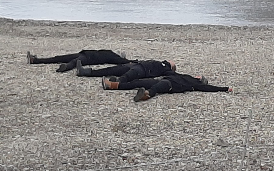 Het kleine passagiersvliegtuig, da een lijndienst onderhoudt tussen Longyearbyen en Ny-Ålesund, is nu uitgerust met een speciaal stel camera's voor luchtfoto's en onderzoek. Via SIOS heb ik drie projecten kunnen indienen en één van de drie wordt nu boven ons hoofd gevlogen. Ieder pixel is 10x10 cm2 groot. Door te gaan liggen, kun je als meerdere pixels herkenbaar op de foto staan. Dat was een goede reden voor Tessa, Catharina en Lisa om even stil te liggen. | |