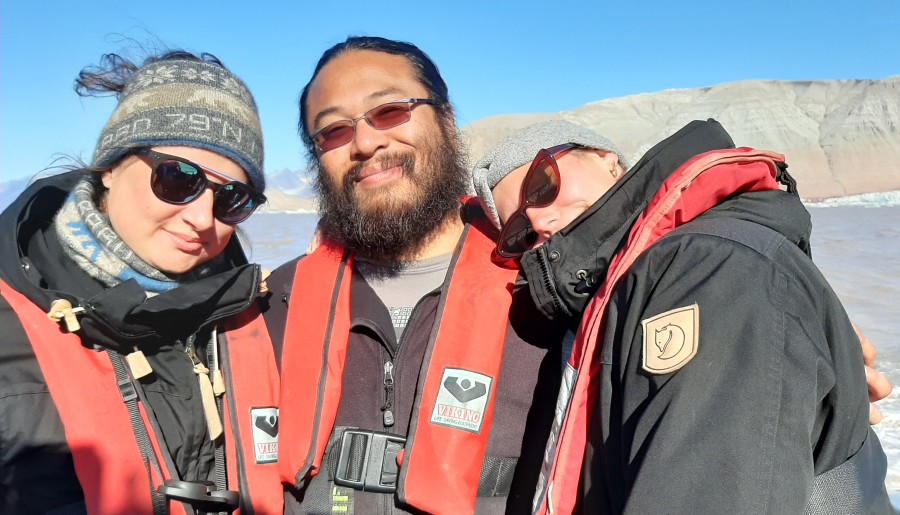| A beautiful day in the fjord, while we count the seabirds and geese along the shore. Lukas drives the boat and Greg is enjoying. Maarten and Catharina count the birds and Tessa is making notes. | |