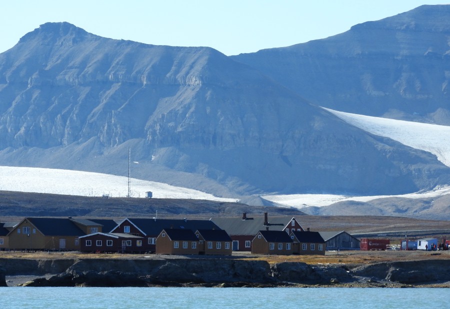 | On approach of the village, I took this picture of the Netherlands Arctic Station, the two yellow houses in the middle of the row of four houses, originally from Ny-London. | |