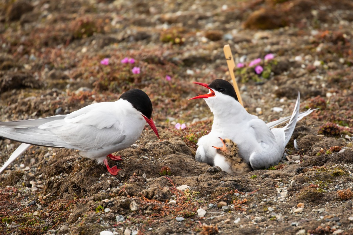 | The arctic terns are hatching. Mikael Saetre took this nice picture. Bring more food! | |