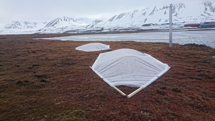 A contribution by Mo Verhoeven This summer, we are studying the effect of cloud cover on grass production. On the first photo you can see the experimental clouds and on the second you can observe the current trend: longer leaves in the clouded plots. Is this because of light stress or because the clouds keep the grass warm? I have my guess, but the lab analysis will have to tell. | |