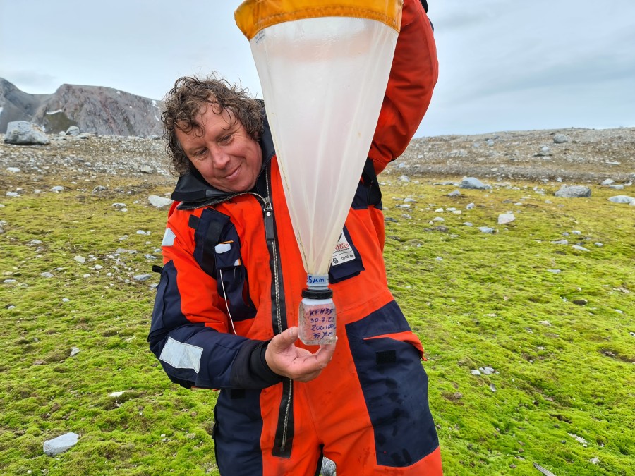 | We hebben de ganzen op Gerdøya maar geteld vanaf de boot nadat we daar de ijsbeer hebben ontdekt. Daarna door naar de Breøyane. Daar kunnen we weer aan land om de ganzen te tellen. Na het tellen verzamelt Christophe zoöplankton en sieralgen. | |