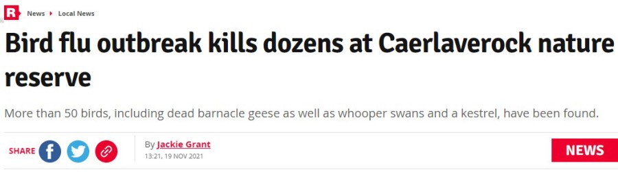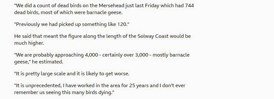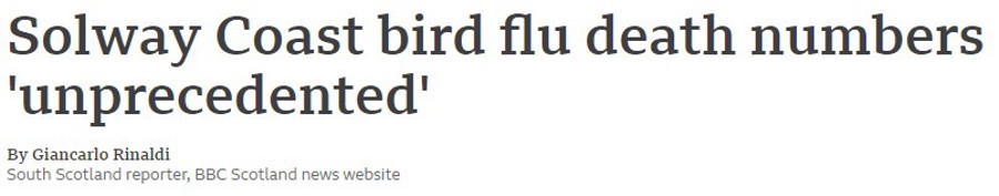 Above is a news item of ITV, about the outbreak, with pictures of a lot of snow on the meadows of the Solway Firth.This is unusual. | |