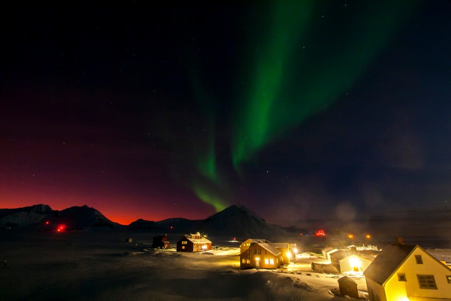 ![]() In de kerstnacht komt Fieke Rader aan het woord in het wetenschapsprogramma FOCUS op NPO radio 1 vanuit Ny-Ă…lesund. Ze is Nederlandse maar werkt bij het Frans-Duitse station AWIPEV en houdt alle sensoren werkend, die de atmosfeer meten. Hoewel het op Spitsbergen nu permanent donker is vertelt ze over het roze licht dat aan de horizon schijnt. Het zijn wolken in de stratosfeer, waarop het licht van de zon beneden de horizon weerkaatst. Dit fenomeen is het laatst waargenomen in 2015. Greg Pixophil maakte er bovenstaande foto van en plaatste die op Facebook. Een bijzonder lichtverschijnsel naast de prachtige effecten van het noorderlicht in de donkere poolnacht. Onder de video is een foto van Christella Guesnon die beide verschijnselen in één foto heeft vastgelegd. | |