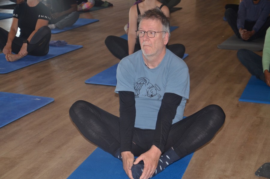 | Today is the longest day of the year in the northern hemisphere. It does not make much difference here as the sun is shining all day in the polar summer. But today is alo international yoga day. In the early morning, the team from India has organised a yoga session for us. On the screen is a video with instructions for different postures. They should be easy, but not all are easy for me. | |