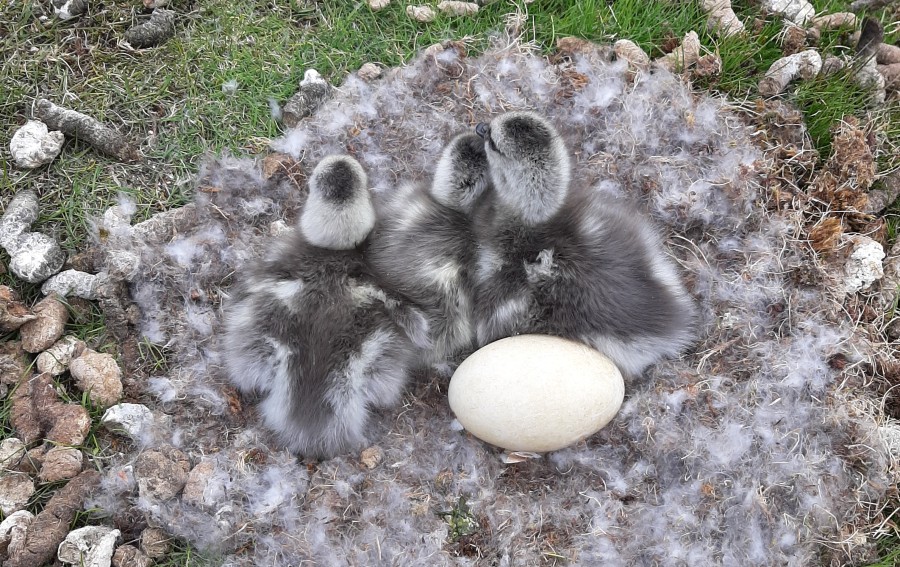 | Yesterday, the very first hatching of nests of Barnacle Geese was observed. Time to visit the islands. | |
