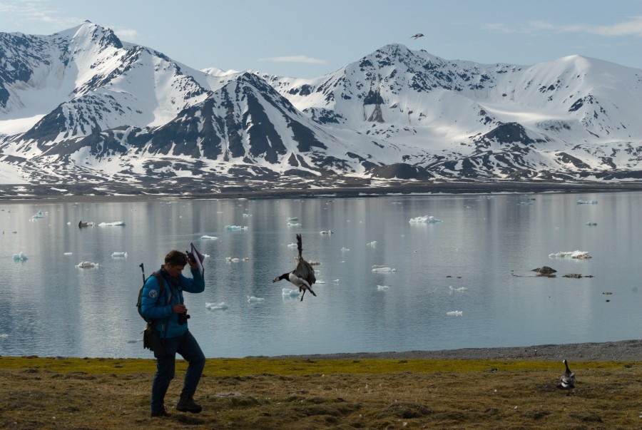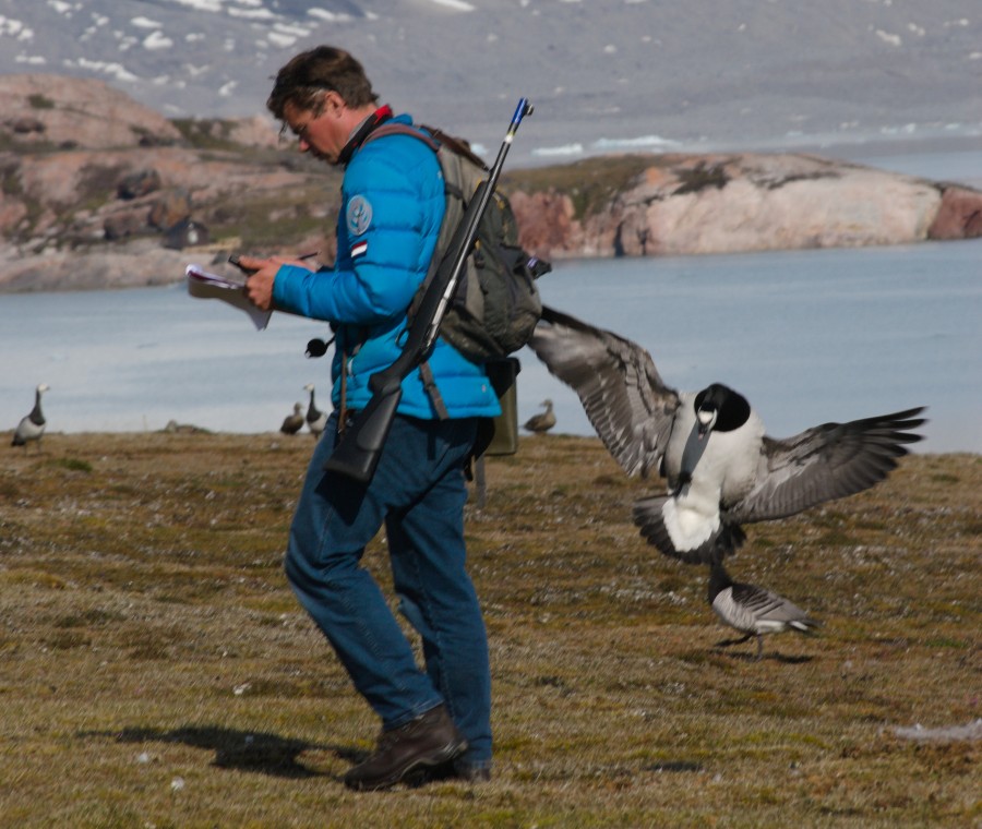 During a nest check, we register the nest defence of the barnacle geese. A few males attack us.