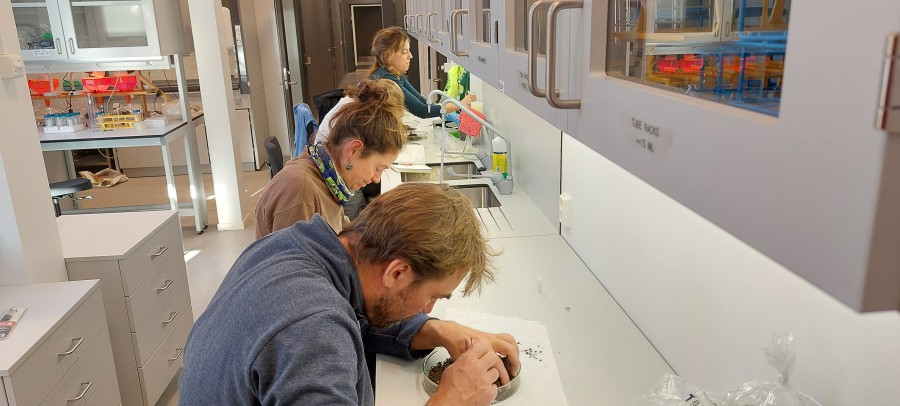 | Already three years, there is a new terrestrial laboratory in Ny-Ă…lesund. It is on the top floor of Vekthuset. The central laboratories (marine and terrestrial) are not intensively used. To stimulate usage, the terrestrial lab is this year free of charge. This means a lot more activity. I am in this lab preserving my insect samples. I made some pictures to show a busy moment. | |