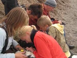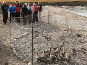 Met alle extra hulp en een grote boot proberen we een ambitieuze ganzenvangst op Storholmen. Eerdere verslagen van deze samenwerking: 2006 storholmen vangst, 2007 les geven, 2007 ganzen drijven en 2007 storholmen vangst). |