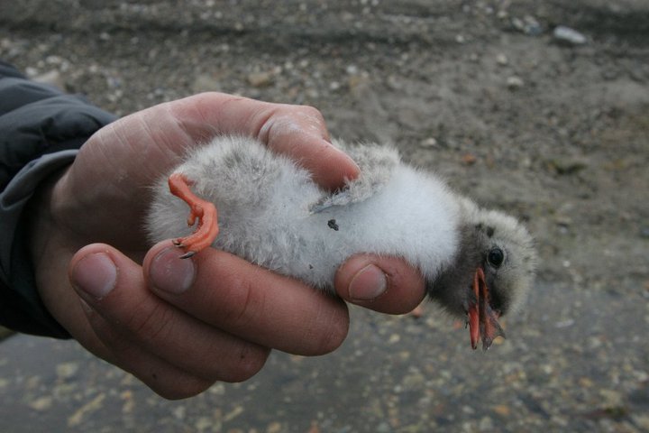 We houden de overleving bij door regelmatig de nesten te bezoeken en de jongen te ringen. Van boven naar beneden: Het hulpmiddel dat voorkomt dat je bij de nestcontrole ondergepoept wordt. Geboorte Kuiken ringen | ||