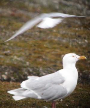 Glaucous gull white AAL is seen already three times in the tern colony near the dogyard.