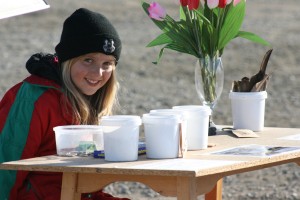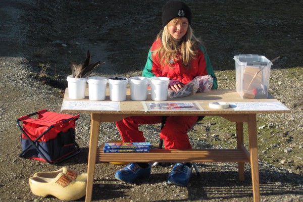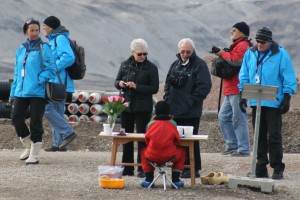 | Willemijn is selling goose feathers and coal from Ny-Ålesund to the tourists. It is a good lesson to learn to speak english. |