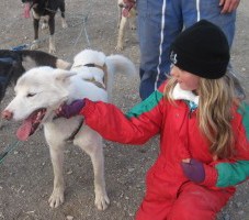 | Willemijn is invited to join Sébastien Barrault during his sledge dog training. The dog team is SAVA VIT. Willemijn is a bit afraid of all the enthusiasm she encounters from the dogs. But after the run the dogs are calm and she can pet them. |  | |