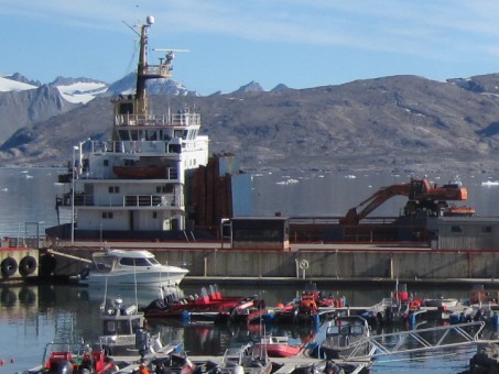 | And in the harbour a ship is unloaded for a new deck of the airport runway. These are the man working outside. But also inside, we have the office, the reception, the kitchen. Even in the laundry room new washing machines were installed today. It is an impressive work force. | |